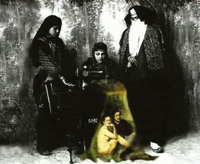 In a locker room, three obese women harass a little black boy with their caresses. Unimpressed by his tears, they press him up against their fleshy bodies, nearly crushing him. Since they are wearing only underwear, the scene vacillates between tender affection and sexual abuse.
