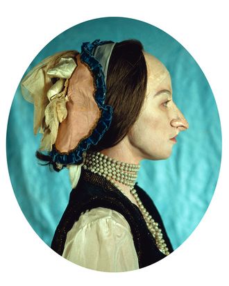 With the image group History Portraits/Old Masters (1988–1990), Sherman began to explore the representation of power and social status in the painting of the Old Masters. In the classically composed portrait formats of this series, which refer to different eras of art history and sometimes even specific works, Sherman especially identifies the artificiality of depiction and self-depiction. Her photographs, ‘faked’ as painting, ironize the deceptive maneuvers of the people and bodies in the portraits. In particular, Sherman’s obvious use of artificial body parts builds directly on approaches to staging she developed in previous series. Here, it very clearly runs counter to the principle of any idealized representation.