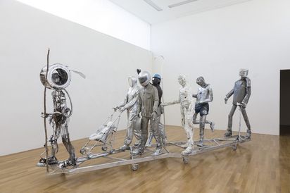 - Material/Technik 1-Kanal-Videoinstallation (Farbe, Ton) mit Koffer, Wolle und Papier